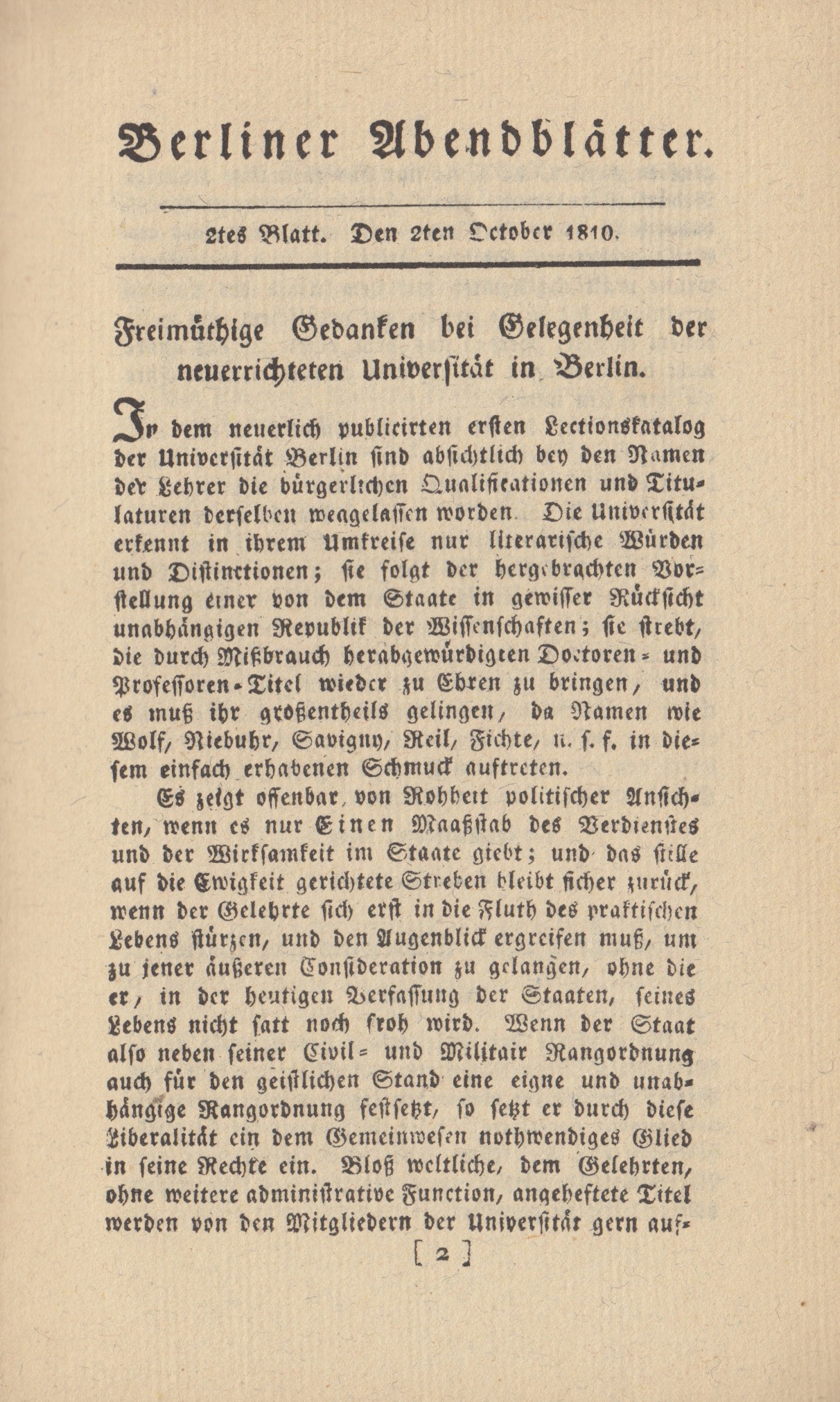 neuerrichteten Univerſitaͤt in Berlin.